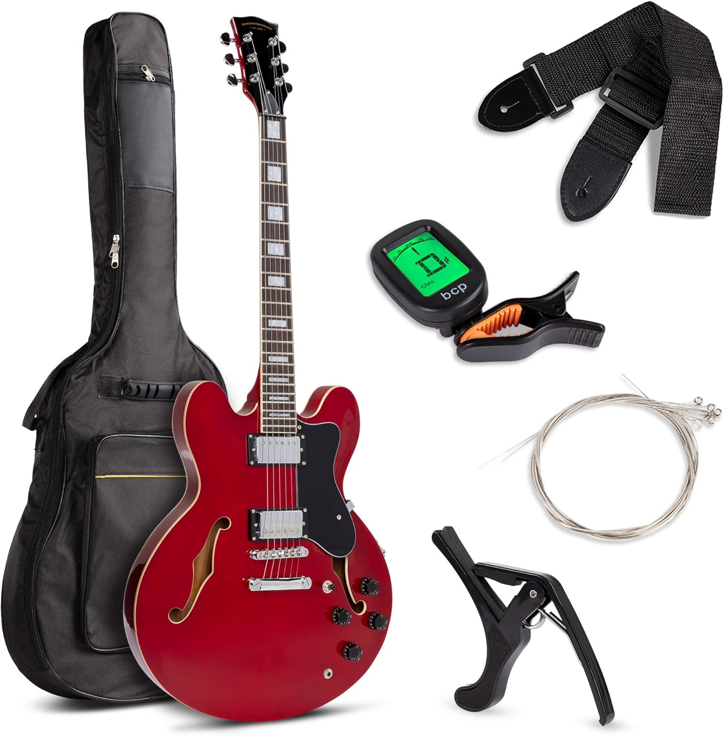 Amazon Com Best Choice Products Semi Hollow Body Electric Guitar Set W Dual Humbucker Pickups 3 Way Pickup Selector Case Electronic Tuner Capo Strap Picks Cutaway Design Red Musical Instruments