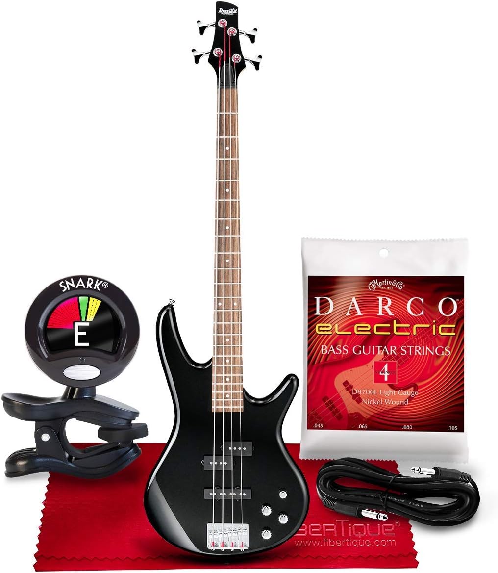 Amazon Com Ibanez Gsr200 Gio 4 String Bass Black Clip On Tuner Guitar Strings Cable And Fibertique Microfiber Cleaning Cloth Musical Instruments