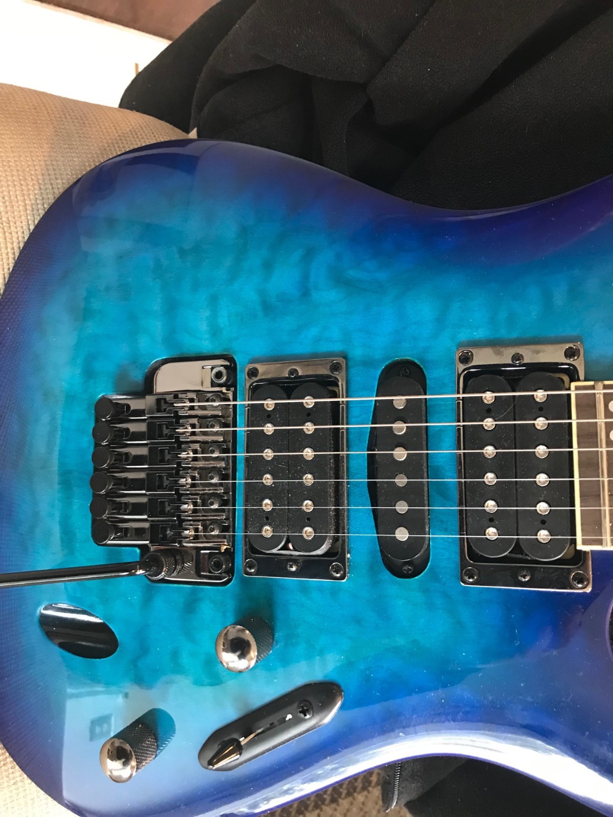 Amazon Com Ibanez S670qm S Series 6 String Solid Body Electric Guitar Package In Sapphire Blue With Guitars Clip On Tuner And Instrument Cable Bundle Musical Instruments