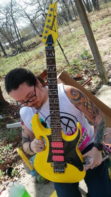 More affordable than ever when steve vai teamed up with ibanez in 1987 little did he realize what a lasting impact his signature model guitar would have. Ibanez jemjrsp steve vai electric guitar yellow 10ft cable stringstunerstand. Passion and warfare.